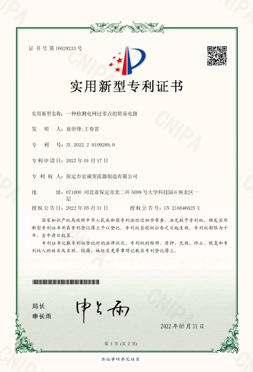 實(shí)用新型證書一種檢測電網(wǎng)過零點(diǎn)的簡易電路
