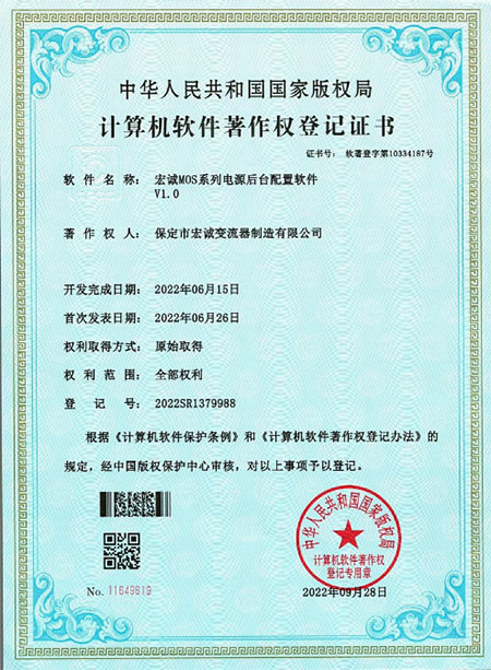 計(jì)算機(jī)軟件薯作權(quán)登記證書--MOS系列電源后臺配置軟件v1.0