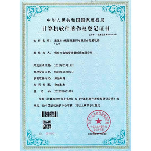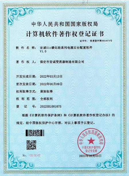 計(jì)算機(jī)軟件著作權(quán)登記證書--Sic碳化硅系列電源后臺配置軟件V1.0