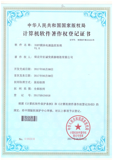 計(jì)算機(jī)軟件注冊(cè)權(quán)登記證書(shū)——IGBT模塊電源監(jiān)控系統(tǒng)V1.0