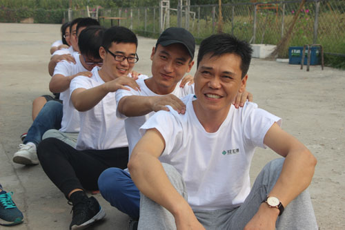大家分成兩組坐在地上,為自己前方的人捏肩捶背,然后轉(zhuǎn)身向后輪換。游戲迅速消除了員工們的陌生感,營造了很好的拓展氛圍,奠定了團(tuán)隊建設(shè)的基礎(chǔ)。