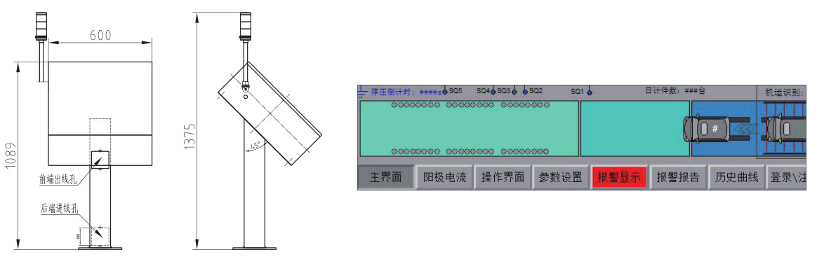 | ■ 采用工業(yè)級一體化控制站,可實時監(jiān)控分布式電源運行狀態(tài),遠程設定參數(shù); ■ 實時動態(tài)顯示電壓、電流曲線以及電泳工件的動畫示意; ■ 為有效防止誤操作,所有參數(shù)設置具備權限保護; |