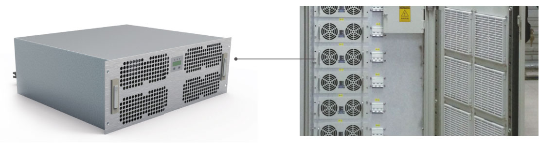 MACS 模塊電源采用 IGBT 高頻技術(shù),風(fēng)冷的散熱方式,本機(jī)帶 DSP 雙核 - 美國 TI公司,與監(jiān)控單元通信,機(jī)內(nèi)參數(shù)可通過CAN 接口由上級監(jiān)控單元設(shè)定或由上級監(jiān)控單元調(diào)節(jié)控制。采用軟開關(guān)技術(shù),效率高,電磁兼容性好,內(nèi)置 CPU 控制,工作穩(wěn)定可靠,寬的輸入電壓范圍。具有輸入過欠壓保護(hù)、輸出限流保護(hù)、輸出過壓保護(hù)、輸出短路保護(hù)、過溫保護(hù)及告警功能和模塊 n+1 并聯(lián)工作且具有均流功能。